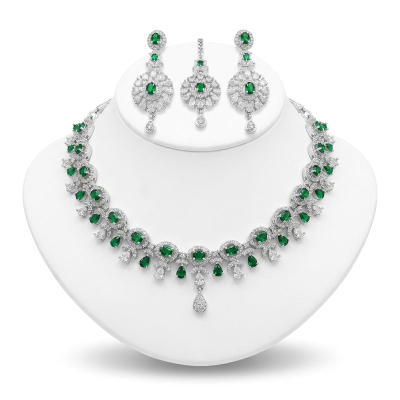 American Diamond Silver Green Bridal Set