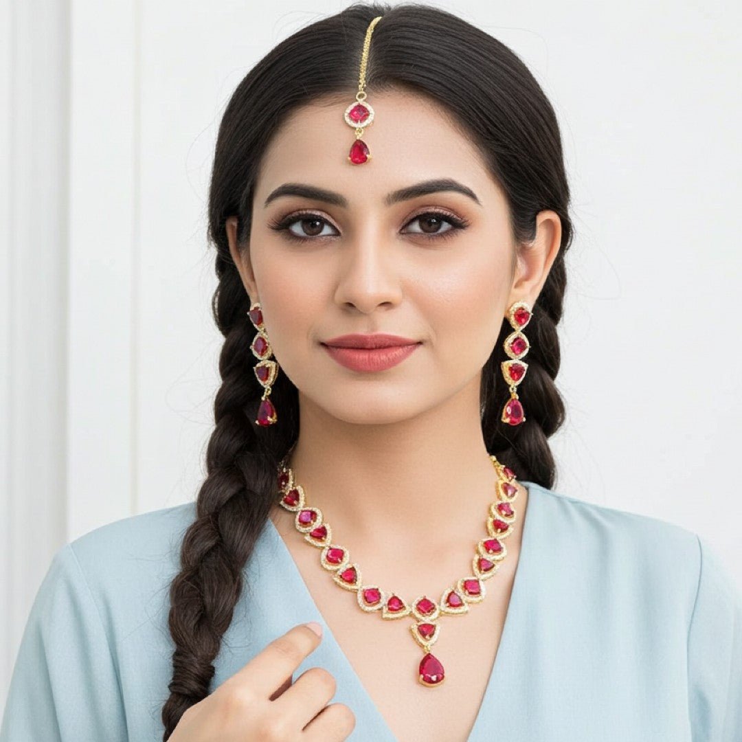 - Package Contents: 1 Necklace set ,1 Pair of earring, 1 Tikka