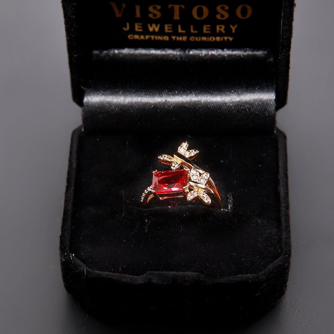 The sheer luxury of this twin butterfly blood ring with delicate milgrain work is guaranteed to win her heart. Feminine and elegant, it features synthetic lab-grown zirconia of premium quality. The clever illusion setting creates the impression of a large central solitaire. A beautiful piece that will bring joy to its owner.